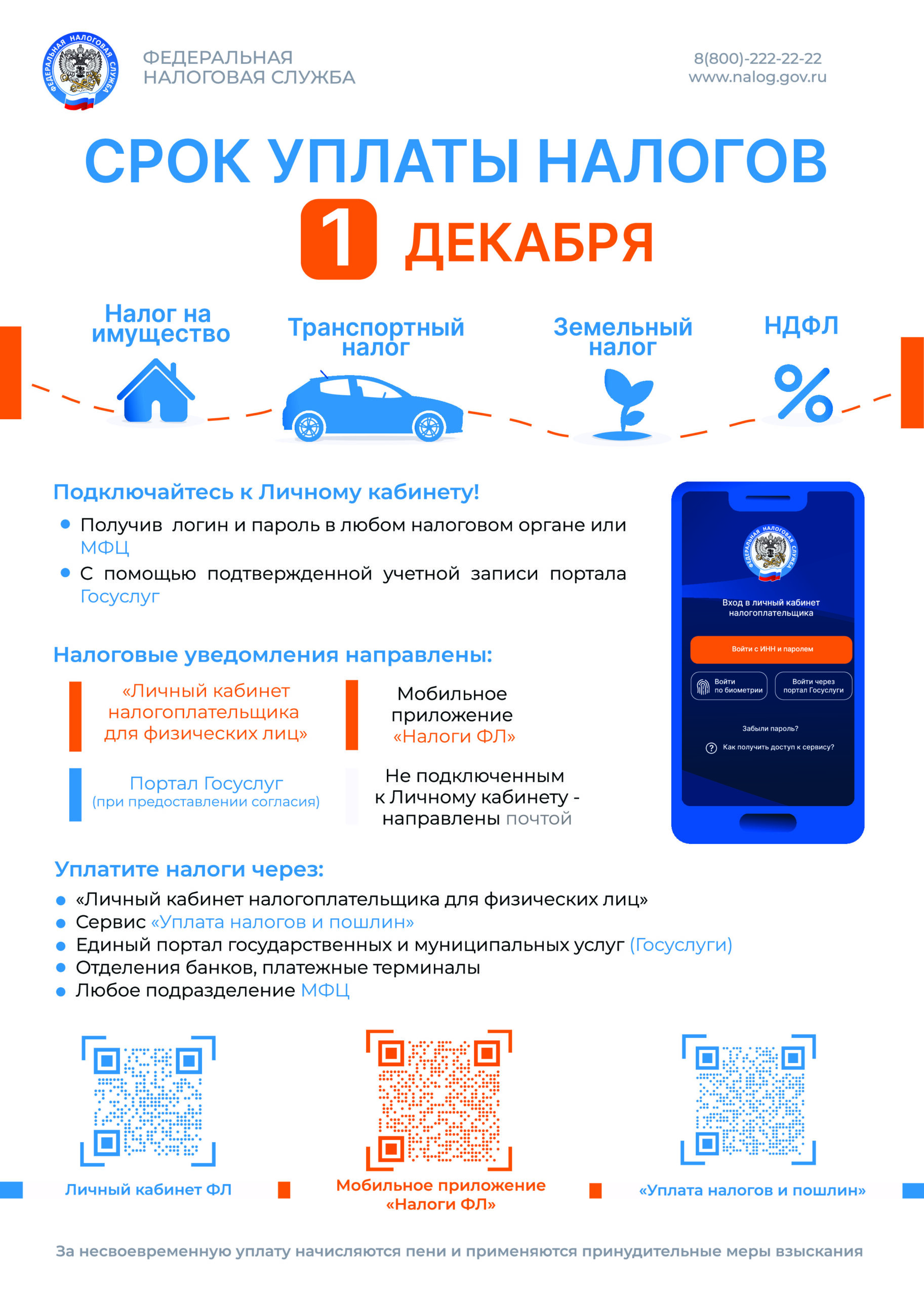 Подходит к концу срок уплаты налога физических лиц! Необходимо успеть это сделать до 1 декабря 2025 года!